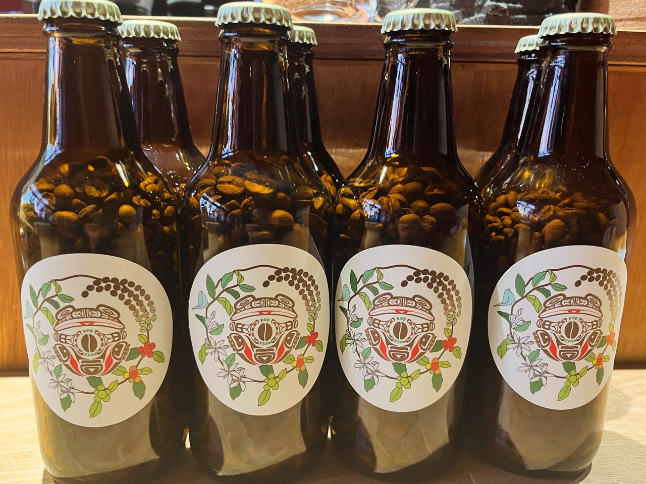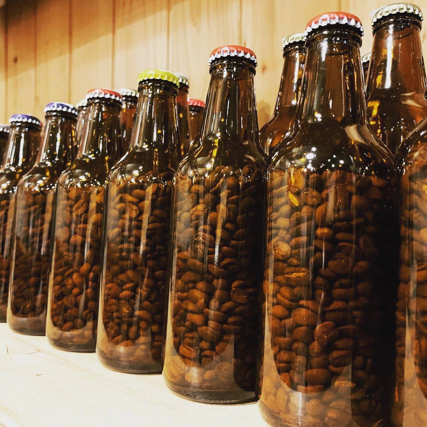 ビール瓶に詰められたコーヒー豆には、